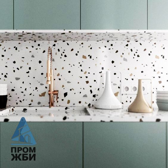 ОТГРУЗИЛИ ИЗДЕЛИЙ с 2008 года: тонн по чертежам тонн по сериям и ТУ тонн из артбетона КухняКухня в стиле терраццо – оригинальное решение, позволяющее создать уникальный неповторимый интерьер. Это возможность выдержать все предметы обстановки в едином стилевом исполнении, получив при этом гармоничное удобное и красивое пространство. Компания «ПромЖБИ» предлагает мебельные гарнитуры терраццо для кухни. Все изделия изготавливают на сбственных производственных площадках компании и реализуют напрямую, без посредников и дилеров. Это позволяет обеспечивать комфортные для покупателя ценовые условия и гарантировать качество. Каждый клиент получает технический паспорт изделий на руки, а также возможность оформить доставку (условия и стоимость уточняйте у менеджера во время оформления заявки).